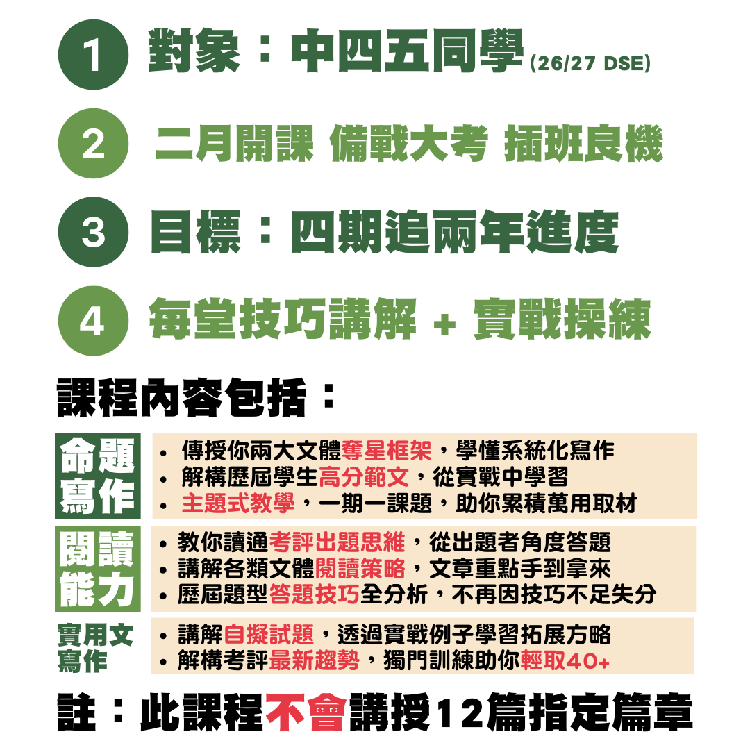中四五狂追課程