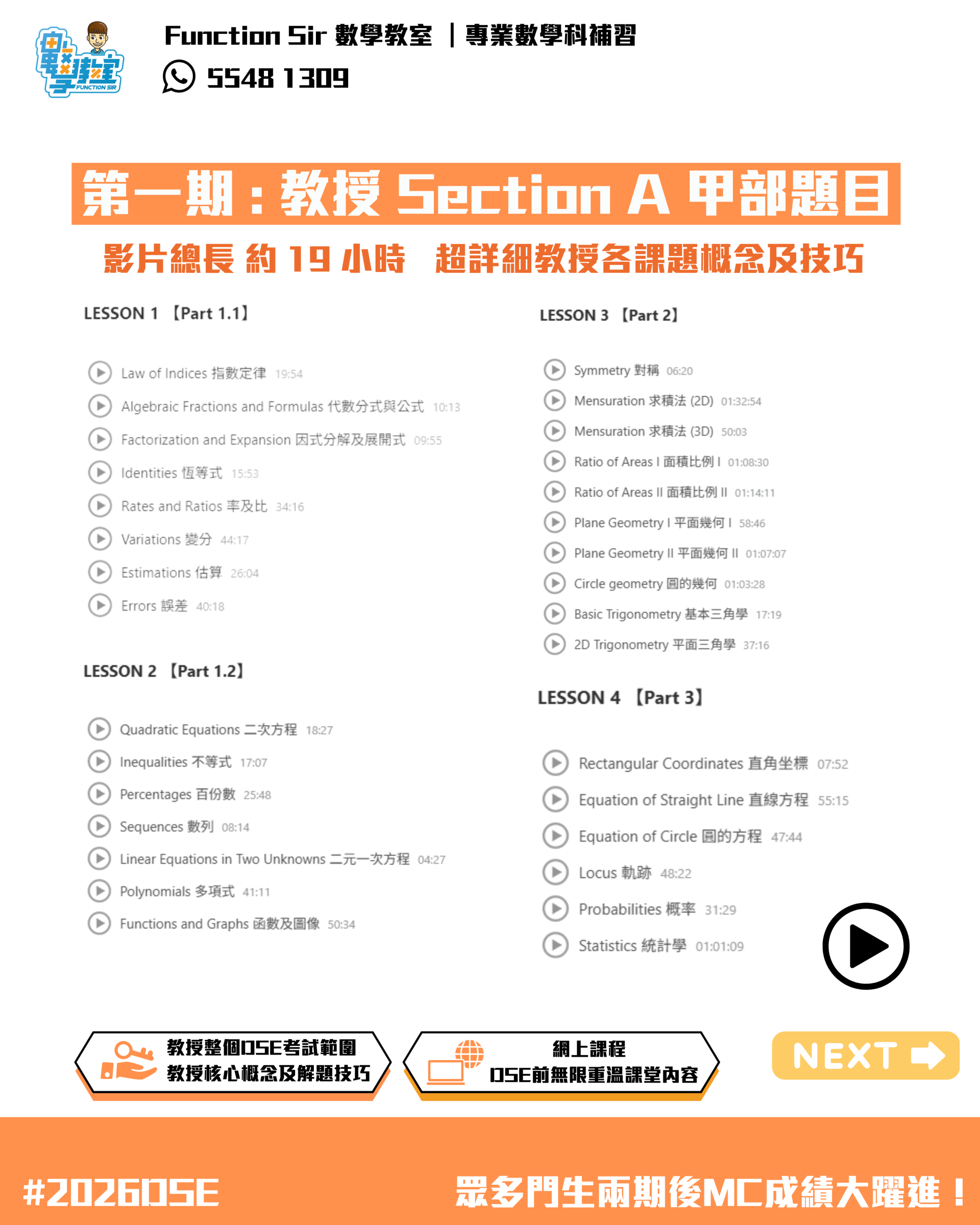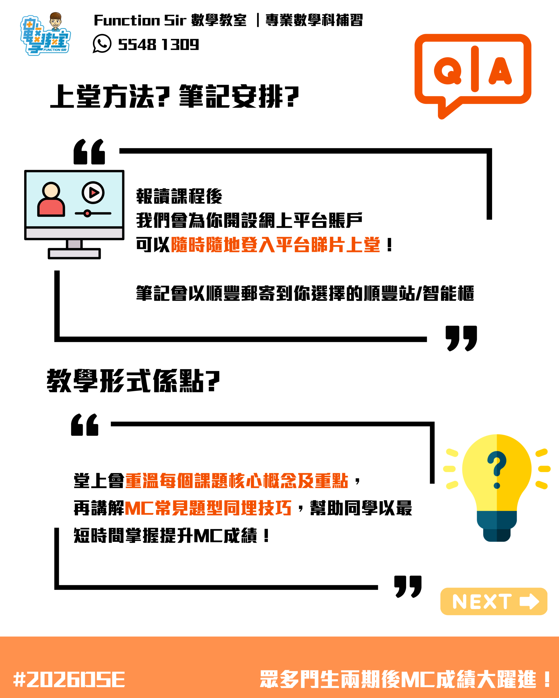 課程分為2期,詳細教授所有MC題型及技巧。
